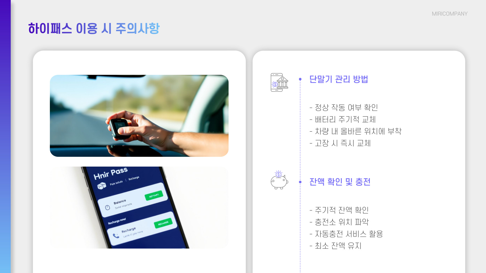 | 하이패스의 장점 | 하이패스 사용 시 유의사항 |