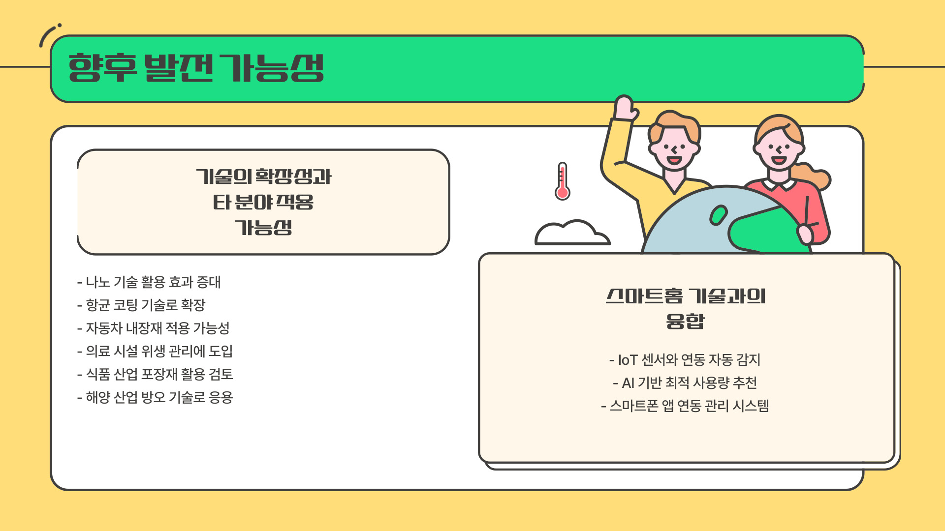 신기술의 다른 예시는 나노 기술을 활용한 곰팡이 방지 코팅입니다. 이 코팅은 벽지에 묻혀 있는 곰팡이의 성장 조건을 차단하여, 자연스럽게 곰팡이가 발생할 수 없는 환경을 만들어 줍니다. 이 코팅의 효과는 수년간 지속되며, 유지 관리 비용을 청구하는 주택 소유자에게 큰 이점을 제공합니다.