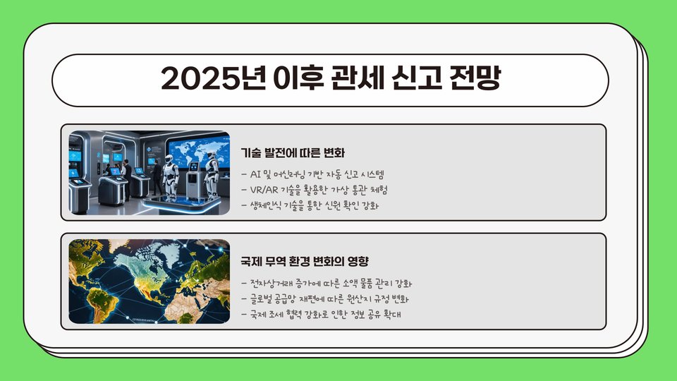 - 기한 엄수: 관세 신고 기한을 반드시 지켜야 추가 비용을 피할 수 있습니다.