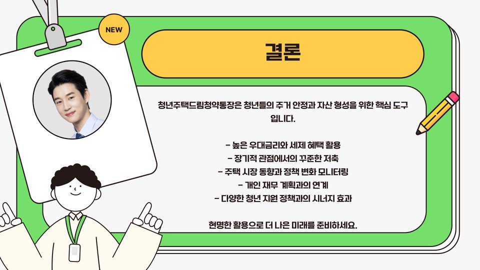 비록 청약통장이 다른 금융 상품에 비해 이율이 낮을 수 있지만, 주택 구매에 대한 목표가 명확한 청년들에게는 장기적인 투자로서의 가치가 큽니다. 따라서, 자신의 상황에 맞는 금융 상품을 선택하는 것이 중요합니다. 주택 구매를 고려하고 있다면, 청년주택드림청약통장을 통해 자금을 마련하는 것을 추천합니다.