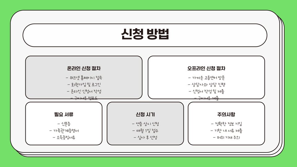 - 온라인 신청: 정부의 공식 웹사이트를 통해 신청할 수 있습니다.