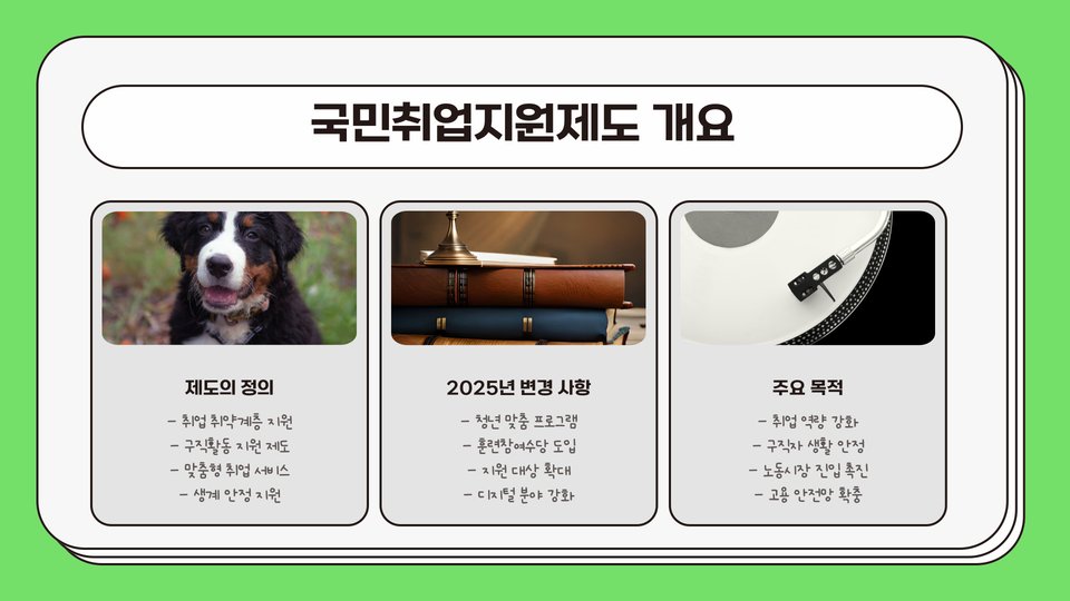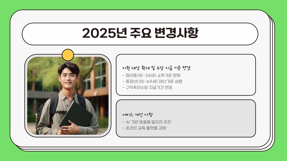 Tags: 국민취업지원제도, 취업지원, 구직자 지원, 2025년 정책, 고용센터, 직업훈련, 경력 단절 여성, 장애인 지원, AI 활용, 구직 활동