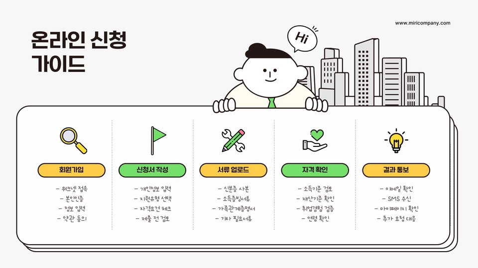 - 신청 방법: 온라인 신청 및 구비서류 제출