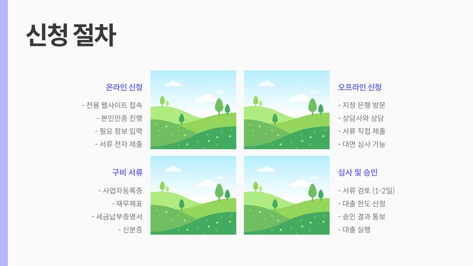 | 서류 준비 | 사업 계획서 및 재무 제표 작성 |