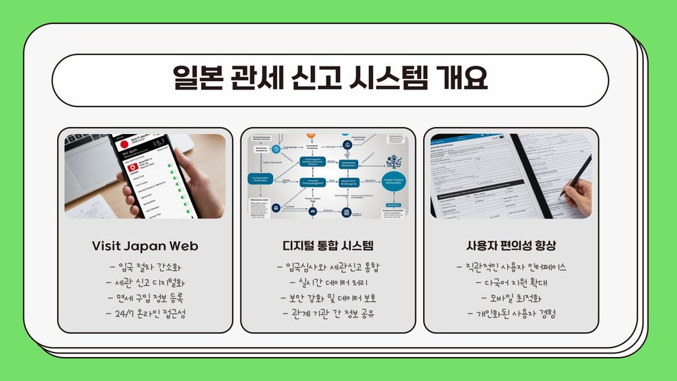 이와 같은 정보들을 바탕으로 2025년 일본 관세 신고에 대비하는 것은 매우 중요합니다. 기업이나 개인 모두가 철저한 준비를 통해 이 과정을 원활하게 진행할 수 있을 것입니다.