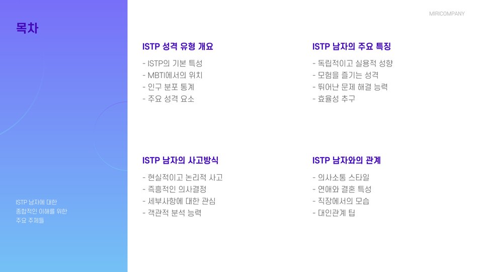 2025년을 위한 ISTP 남자 핵심 포인트 확인하기 바로가기