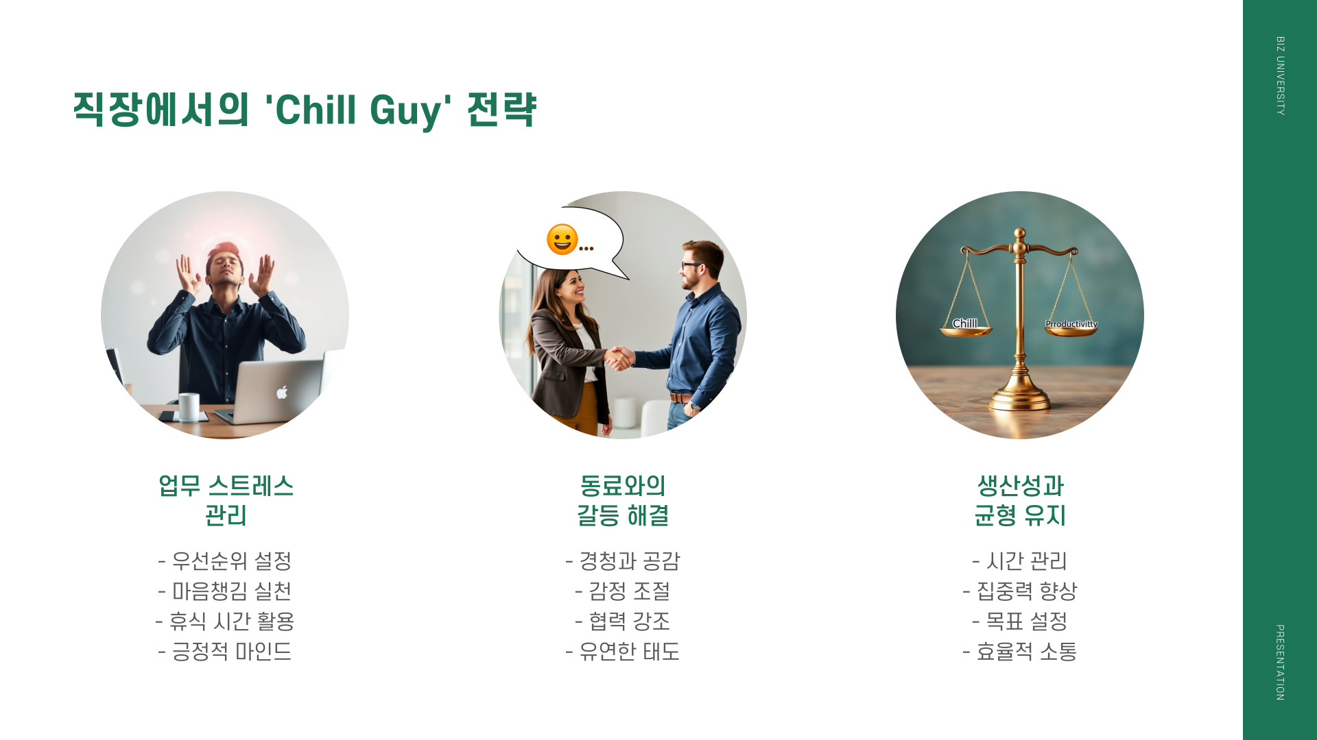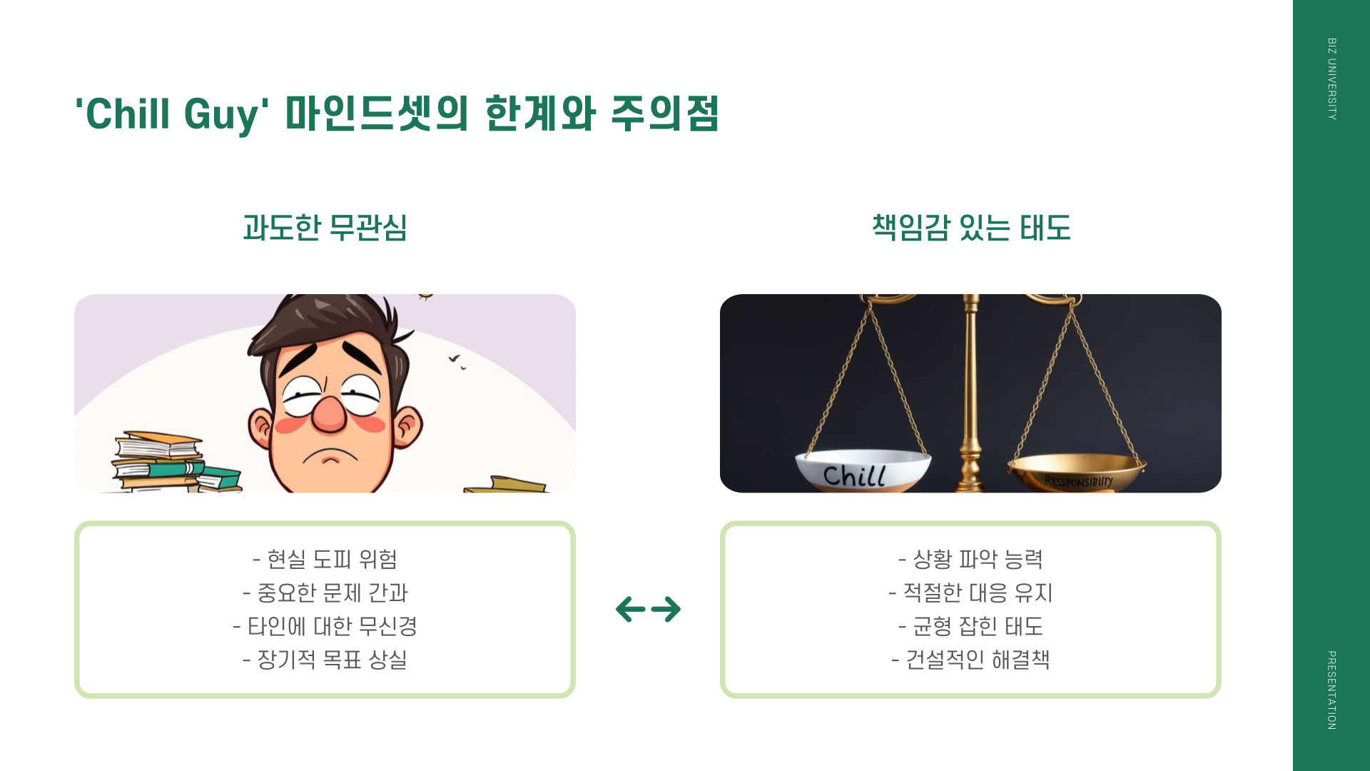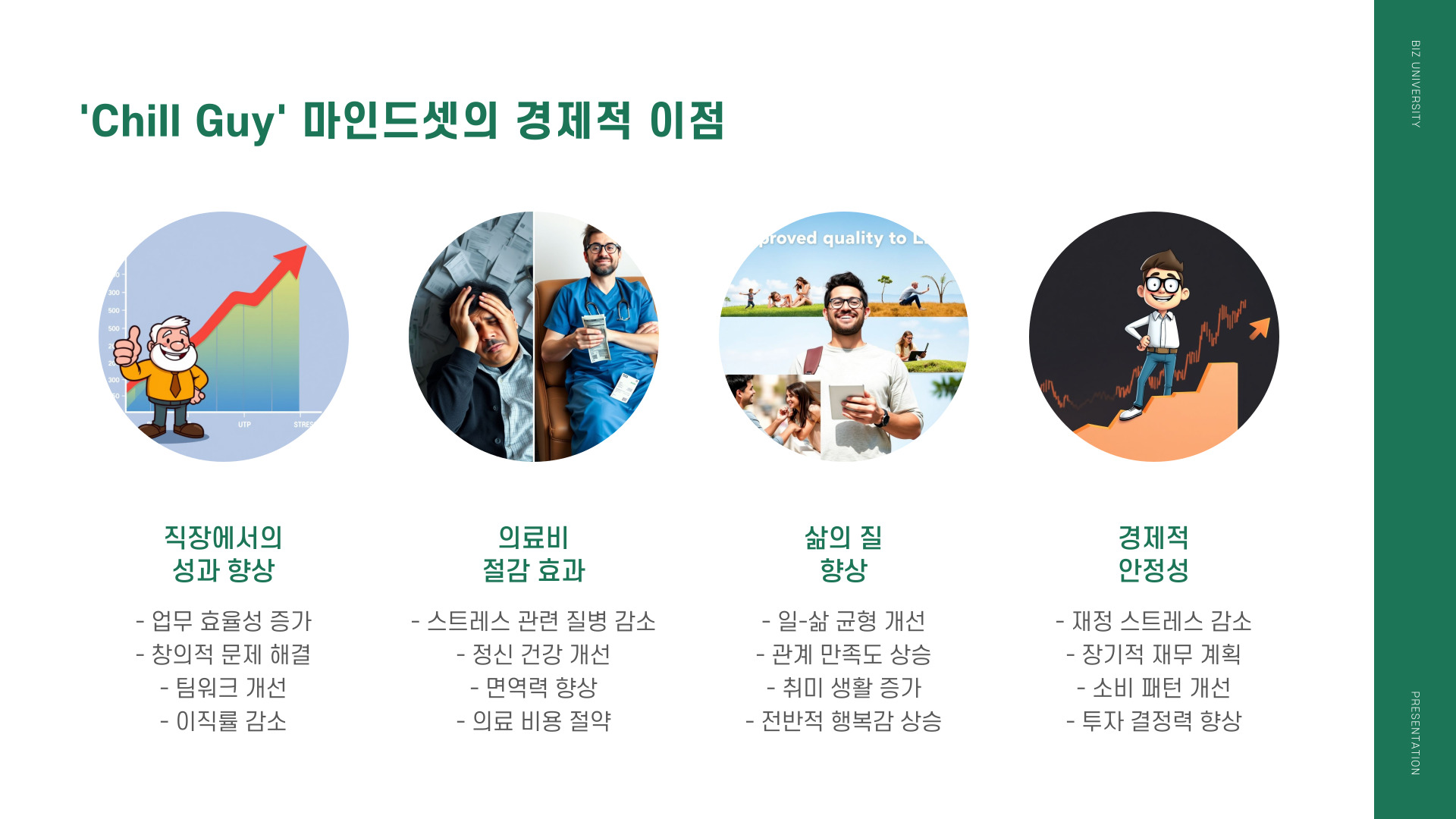 스트레스 문제를 해결하기 위해 chill guy의 철학을 현실 속에 적용하는 것은 큰 변화로 이어질 수 있습니다. 너무 많은 생각이나 걱정에 휘둘리지 않고, 문제를 해결하기 위해 노력하는 여유로운 태도가 필요합니다. 우리가 정말 중요하게 여기는 것에 집중하는 것 또한 중요한데, 이는 우리를 더욱 행복하게 만들 수 있는 요소입니다.