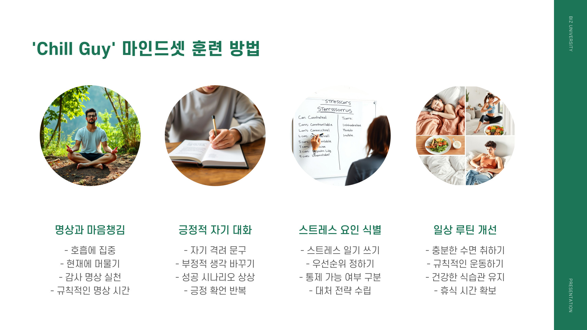 - 긍정적인 마인드로 일상 속 스트레스를 줄일 수 있습니다.