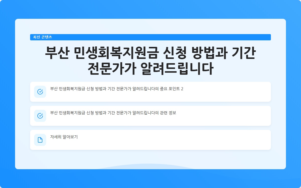 부산 민생회복지원금은 경제적 어려움 속에서 국민들에게 큰 도움이 될 정책입니다. 신청기간을 잘 기억하시고, 필요한 서류를 준비하여 신청하세요. 도움이 되는 이 지원금으로 여러분의 가정이 조금이나마 편안해지기를 바랍니다.