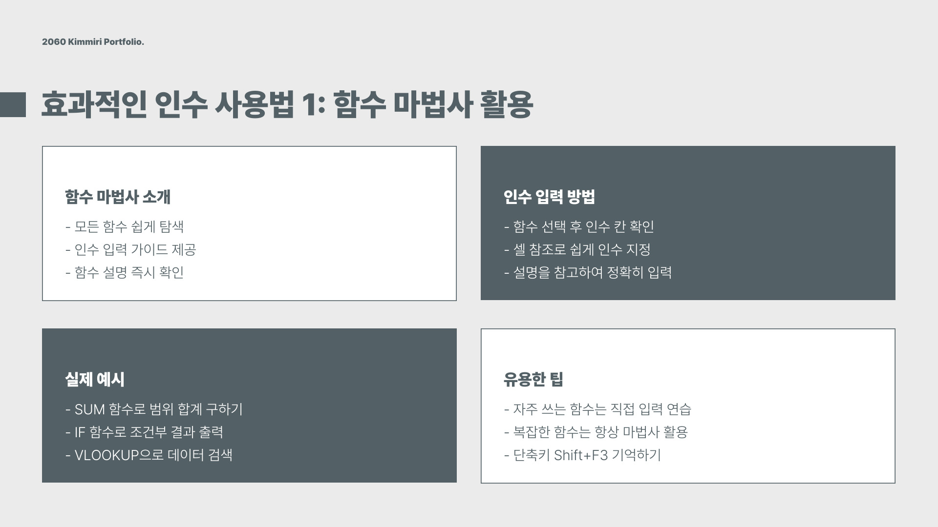 • 엑셀 함수 인수는 데이터 처리의 핵심 요소입니다.