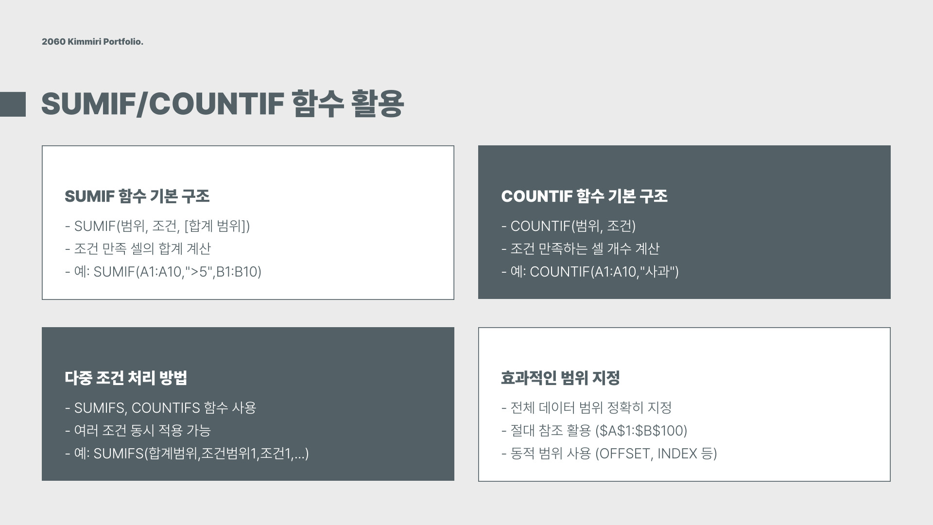 • 셀 참조와 이름 정의 기능 활용으로 효율성 증대 가능.